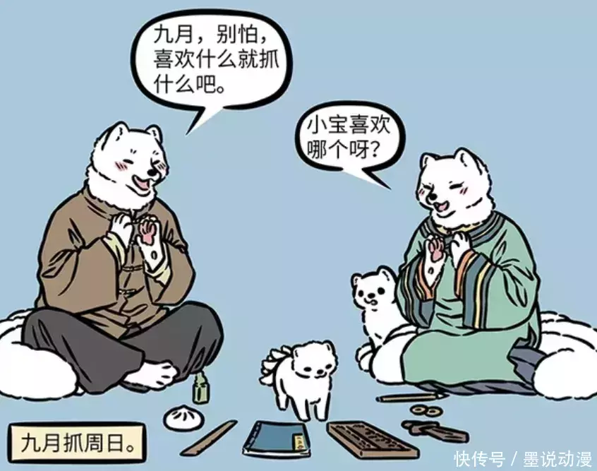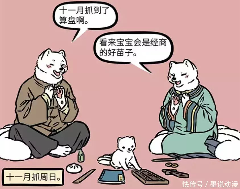 《非人哉》漫画版中,九月和十一月在刚满一周岁的时候,都进行过抓周。十一月看起来是按套路出牌,抓了算盘。可是没想到在父母没留神的瞬间散户配资,十一月吃算盘,还化身豌豆射手。至于九月抓周,那是什么东西都没选,而是打破次元壁,直接拿到主角光环。
